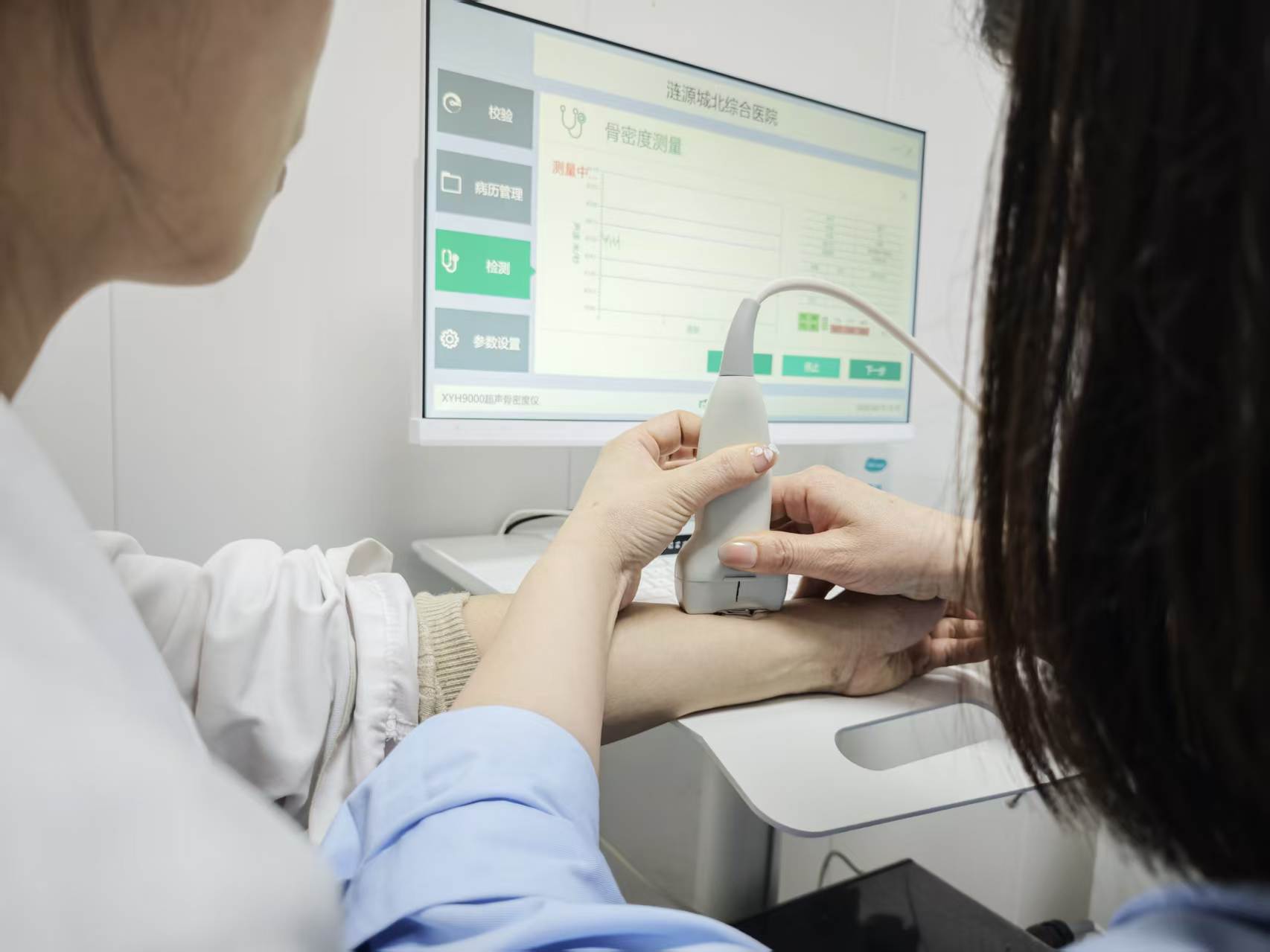 2026年4月15日,辛宇自主研发的XYH9000A型号超声骨密度仪,在涟源市城北综合医院顺利完成安装、调试与全流程验收工作,并且正式投入临床使用。此次装机的骨密度仪设备,凭借设备的便捷性和测量的准确性优势,为区域内骨骼健康疾病的早期筛查提供了强有力的技术支撑。